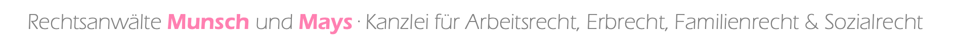Die Anwaltskanzlei Munsch und Mays war in den Jahren 1988 bis 2024 eine feste Größe auf dem Solinger Markt der Rechtsdienstleistungen. Sie begann zunächst als Allgemeinkanzlei, hat sich dann im Laufe ihres Bestehens immer weiter spezialisiert und konnte zuletzt auf den Gebieten Arbeitsrecht, Erbrecht, Familienrecht und Sozialrecht mit insgesamt 4 Fachanwaltsqualifikationen aufwarten.